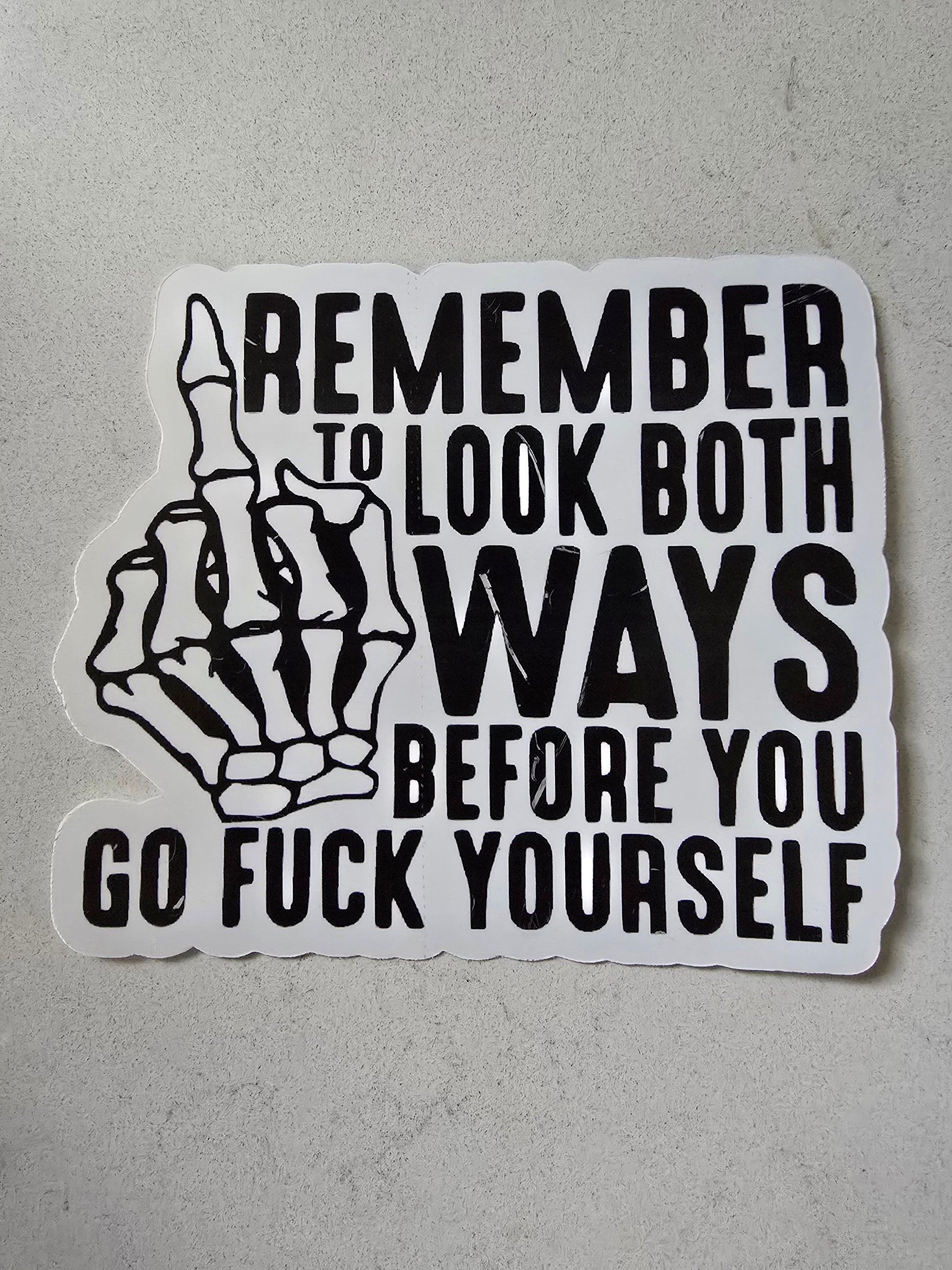 This waterproof adult humor sticker is a fun way to add some personality to your car or laptop. Made with high-quality materials, the sticker is sure to withstand any weather conditions. Get a good laugh and make a statement wherever you go with the Funny Look Both Ways sticker.